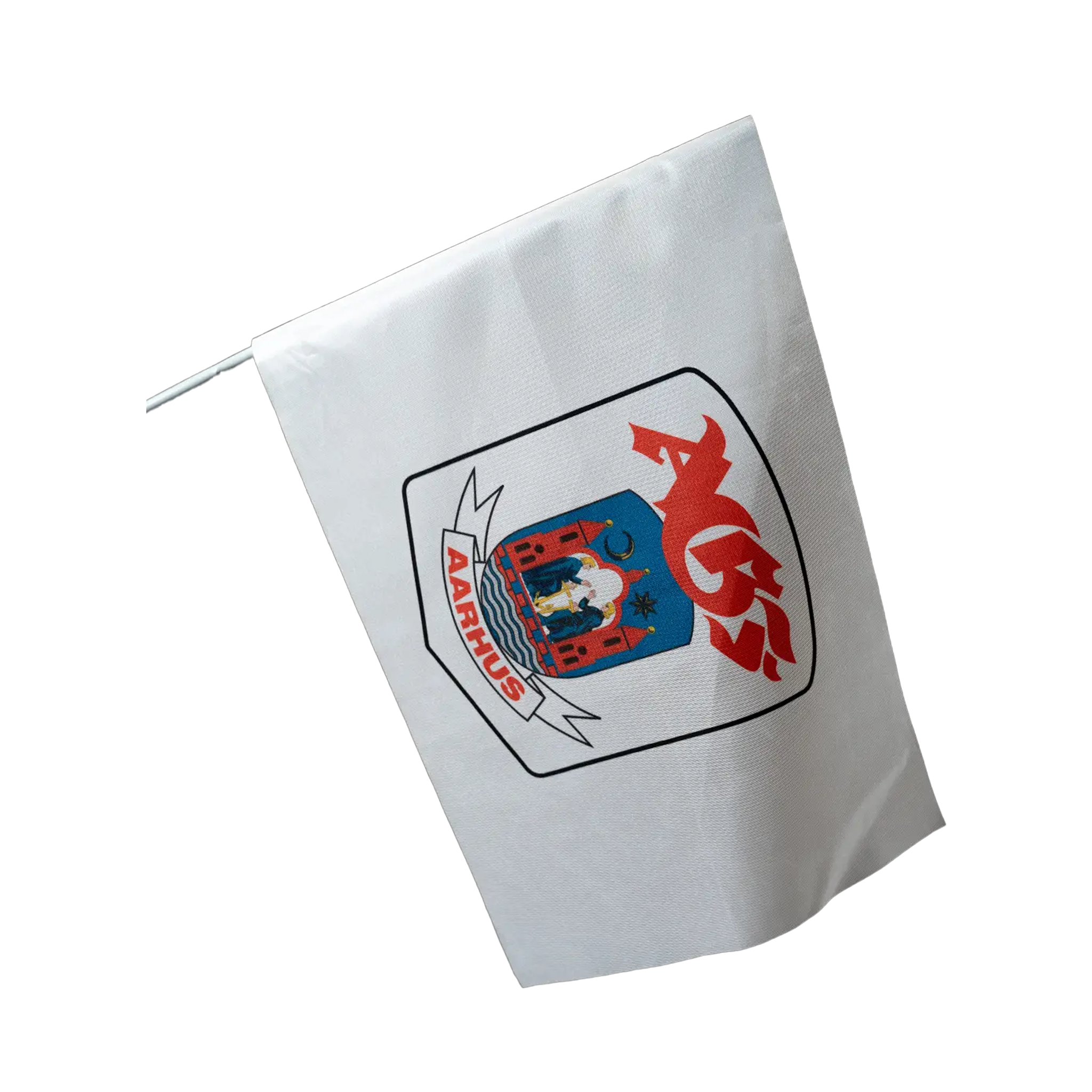 Vis din støtte til AGF med dette hvide flag, der prydes af klubbens ikoniske våbenskjold. Flaget er en perfekt måde at udtrykke din klubånd på, uanset om det bruges til kampdage, fester eller som dekoration i hjemmet.