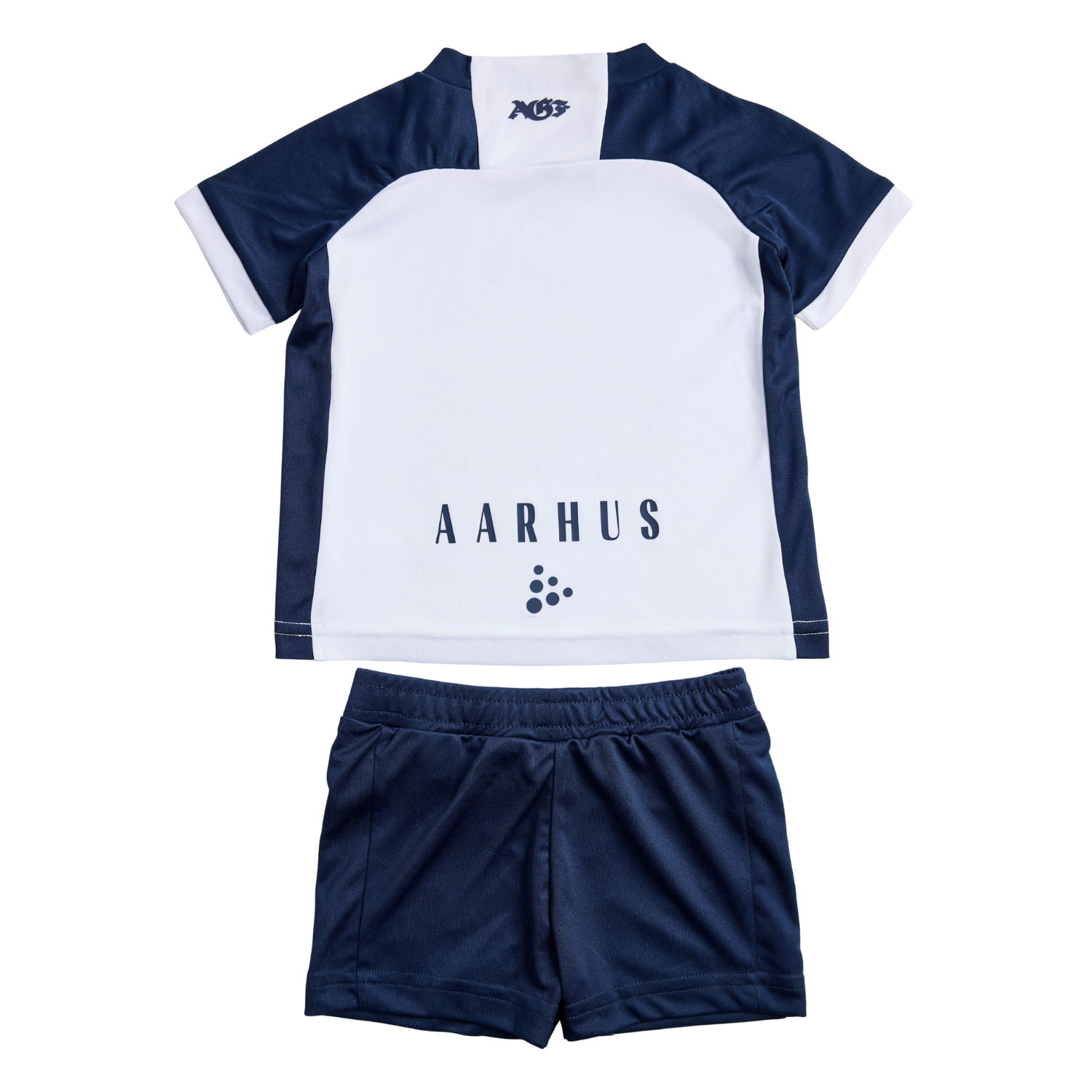 AGF mini-kit i hvid og blå med AGF-logo. Perfekt til de mindste på kampdag.